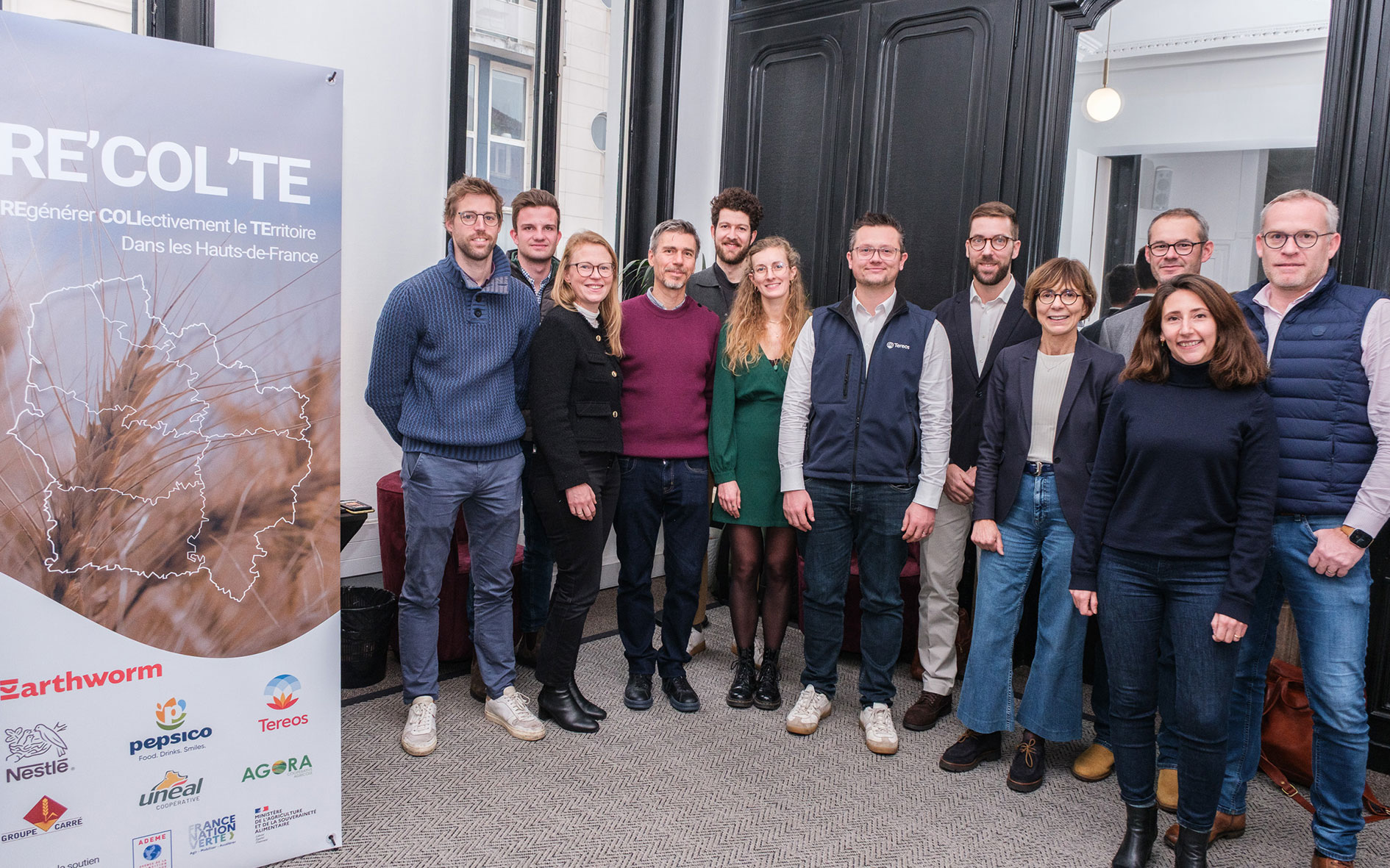 Le projet RE’COL’TE – REgénérer COLlectivement le TErritoire, porté par Earthworm Foundation, soutenu par l’ADEME, et réunissant des acteurs majeurs de l’agroalimentaire – Nestlé, PepsiCo, les coopératives Agora, Tereos et Unéal et le Groupe Carré négociant en grains, vise à accompagner 175 agriculteurs des Hauts-de-France vers des pratiques régénératrices à travers un dispositif alliant accompagnement technique, collecte de données et incitations financières fondées sur les résultats.
